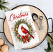 Merry Christmas Wreath Cardinal Bird Tea Towel