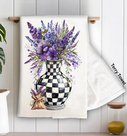 Checkered Vase with Lavender Kitchen Terry Towel