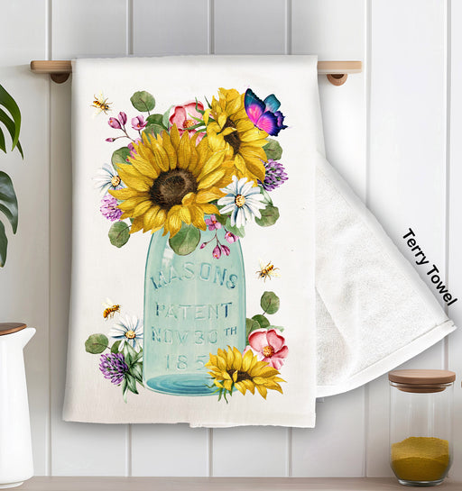 Country Mason Jar Sunflowers Cotton Terry Cloth Towels