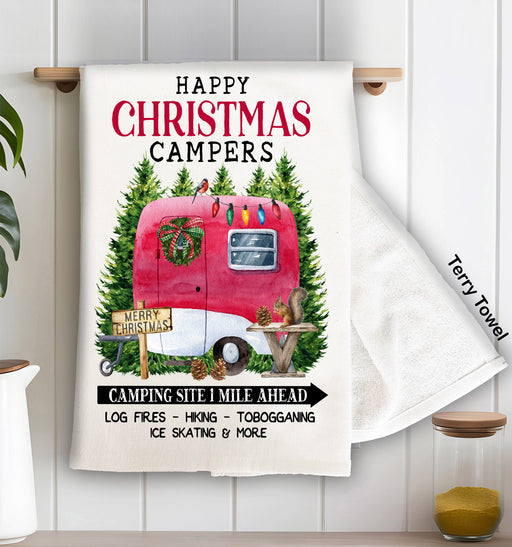 Happy Christmas Camper Trailer Kitchen Terry Towel