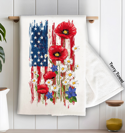 Patriotic American Flag Flowers Kitchen Terry Towel