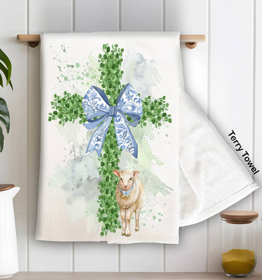 Easter Boxwood Cross Lamb Spiritual Kitchen Terry Towel