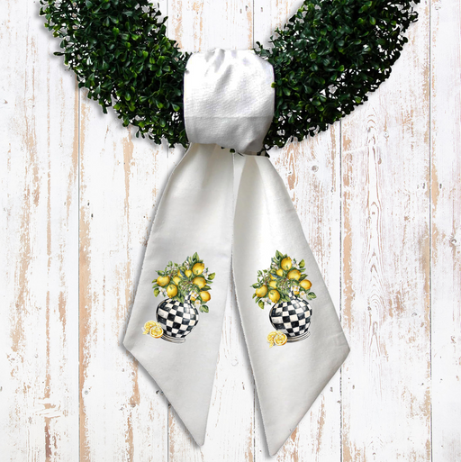 Elevate your wreath décor with our elegant wreath sash, the perfect way to refresh your front door for every season. This decorative ribbon sash ti...
